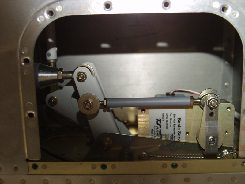 Next I clamped the leftside to the wingtip with the stick centered and then moved to the right side. I repeated the process until both sides matched. I also changed out the bolt on the autopilot servo as the one holding the new trutrack AD clip was not quite long enough.