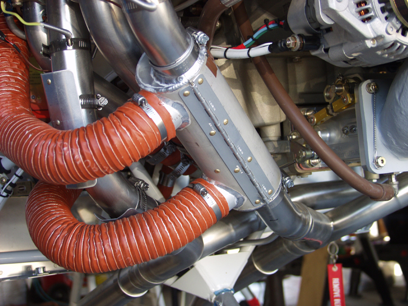 Cold front came in late yesterday and cleared everything out. Cool start but nice in the afternoon. Received my new heatmuff from Spruce. Started out the day installing it. Its not the exact geometry I need but I think I can make it work and I like the hinged openings to make the fit. You basically just remove a hinge pin on one of the hinges and it opens on the opposite hinge. I used the clamps to hold it and tried a few different angles. Hope this one works without hitting the cowling. I had to add another heat shield on the exhaust to protect the scat tubing.