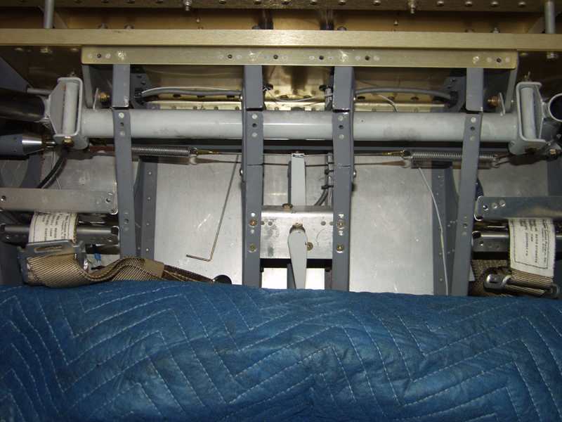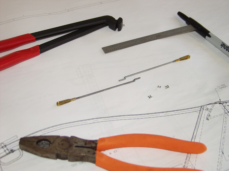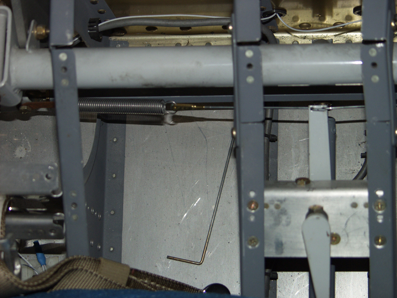 Next I wanted to clean up the safety wiring on the aileron trim mechanism. I took a measurement of the saftey wire which was about 4.5 inches on each side. I shortened that by .5 to 4 and made up these wire control rods. I used a tool to bend the z bend in them on one end which goes into the trim handle. On the other end the rods are threaded with small clevis connections. These connect to the springs and there are saftey clips that keep the clevis pins from coming loose. Came out great. I should of taken a before and after picture. This looks like the way to do it.