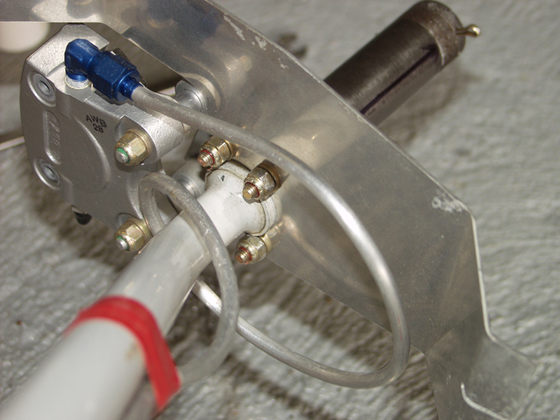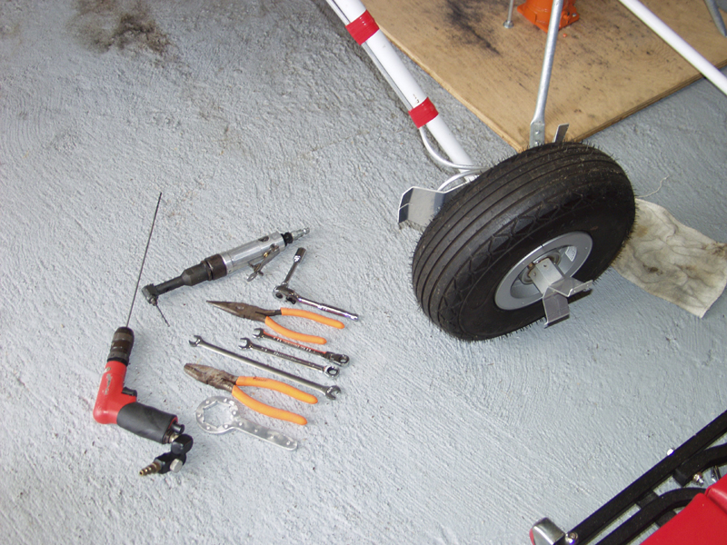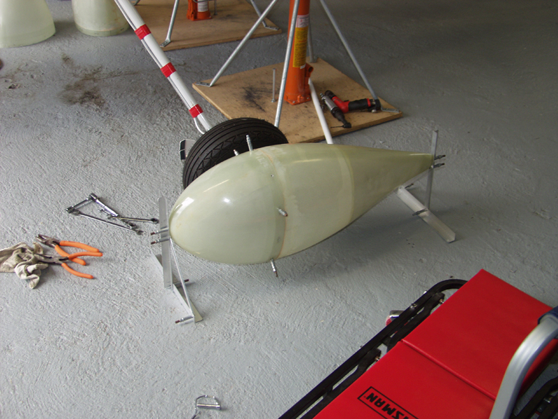 After I changed out the bolts and drilled the hole for the cotter pin on the axle I started working on the wheel pants again. I mounted the right one on a stand I fabbed up. Stole the idea from a guy in Round Rock. You know the guy. Jeff B. He built a really nice plane and then sold it.