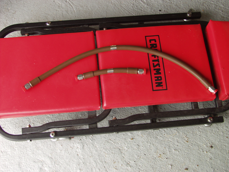 My new fuel lines came in on Thursday. With mounting the fuel flow sensor on the firewall I needed one new short line to run from the pump to the sensor and then the extra distance from the sensor to the injector body made it necessary to order a longer 27 inch line. I ordered these thru PHT www.aircrafthose.com. I ordered on Monday and they were here Thursday UPS ground. Now that is service baby!