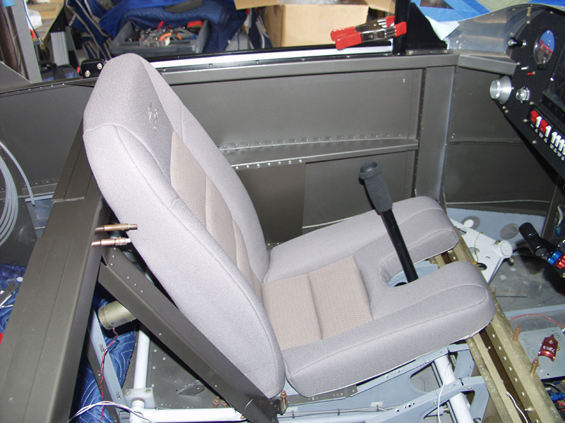 While I was waiting for him to show up I installed the pilot side seat. This consisted of aligning a hinge strip up to the bottom of the seat and match drilling to holes located on the bottom of the seat back. These new seats from Classic Aero are so nice.