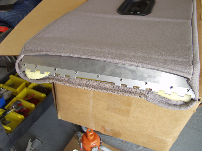 Next was to do some more triming of the windscreen. With it in place there are still a few high spots that almost touch the slider when in the closed position. After marking and sanding with the airtool and a scotchbrite pad I next made up 2 hold down clips out of aluminum. I made these to allow the use of existing rivet holes close to where the front of the windscreen touches the top skin.