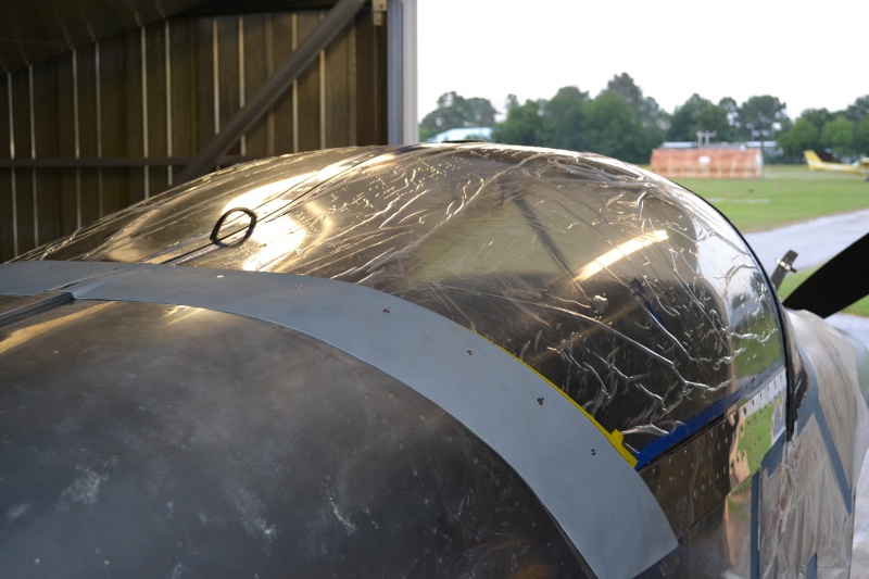 After Jim helped me the other day we had just drilled the holes in the rear canopy fairing. Today I removed the clecos one at a time and tapped the canopy frame for #8 flush screws. Looks like this is going to work.