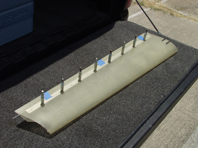 Ok last week I finished the landing light on the right wing which completed the wings except for the wingtips. I will do those when the wings are on later with the help of Jim K! Today was HOT. 99 in the hangar with fans on and back door open.