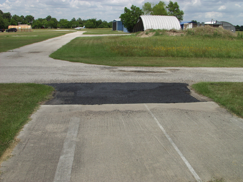 The area between the taxi way and my hangar exit is loose gravel so I swept up all the loose gravel and used an asphalt sealer to lock things in place. Came out pretty good. Still need a bit more to complete the right edge as I ran out. Another bucket and a bag of asphalt repair and all the holes should be filled in so Jim can move to Weiser. Then I will have a helper! :) Right Jim.