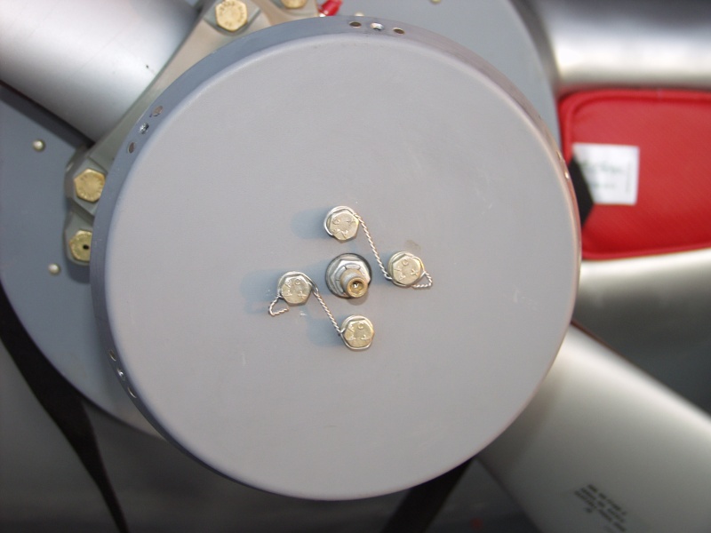 I removed the prop spinner and painted it silver as well. While it was off I went ahead and safetied the front spinner bolts.