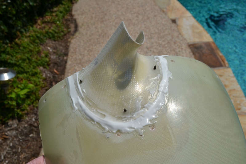 This weekend I brought the fiberglass stuff and the wheelpants to the house. I roughed up the surface where the fairings meet the pants. Mixed up some micro, cabosil and clamped everything in place.