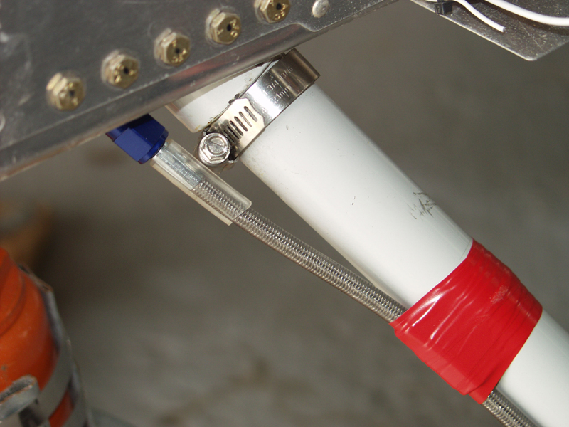My flex lines showed up from Bonaco so I am changing out the hardlines down the gear legs. I think this is just a better way to go long term. I know there are a bunch of planes flying with the hardlines but just something I wanted to change. Even though they are plastic coated I still used tubing to give stand off from the gear legs at the tape points and one at the top in case there is any vibration next to the clamp that holds the gear fairings on.