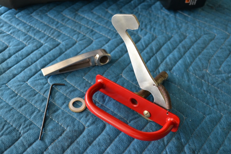 Anyway once that was done I set the canopy back in place and tested closing it. Installed the handle and pulled it shut. Check! Then I got my fancy top handle that I bought ages ago. The only problem with this handle is it gets held in place with 2 set screws. No way the kind of pressure this takes will that work long term. So I got it into position and with one of the sit screws out I marked it and then used a #40 bit to drill a small dimple in the shaft. I removed it and then drilled it deeper on the drill press. Next I repeated the steps for the other set screw on the other side. Came out great. I will just install this on the final step with Locktite to make sure they do not vibrate out.