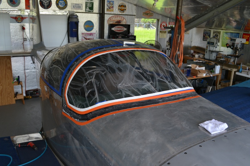 Next I sanded and cleaned up the 1 inch glass layer. Then I marked a 2 inch line and tapped a bottom line with 3 layers of electrical tape starting with white as a sanding indicator. Then I retaped the top with the same color for the last layer. Then it was time to lay another glass layer moving up to a wider layer. Of course in these hot temps the last of my batch kicked off and started smoking. Pot life not good in this heat.
