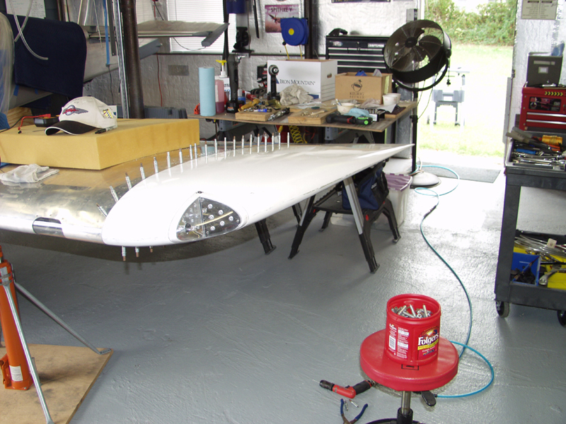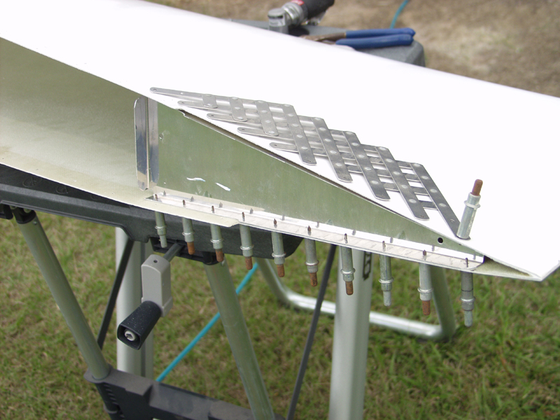 Next I clamped the rear rib in place and used the rivet fan to layout 10 rivets on each side. I drilled one by one replacing the spring clamps with the clecos. Looks good and ready to rivet in.