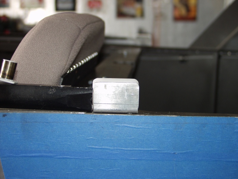 Next I marked the track slider block and drilled to #40 and then used this to drill thru to the back of the canopy frame. Then unibited the frame to 3/16. On the press I used a regular 3/16 bit to enlarge the track block for the bolt. Installed and tested. Sweet. Last I used the die grinder with a course pad to round off the bottom of the track block per plans to minimize the contact of the fuselage.