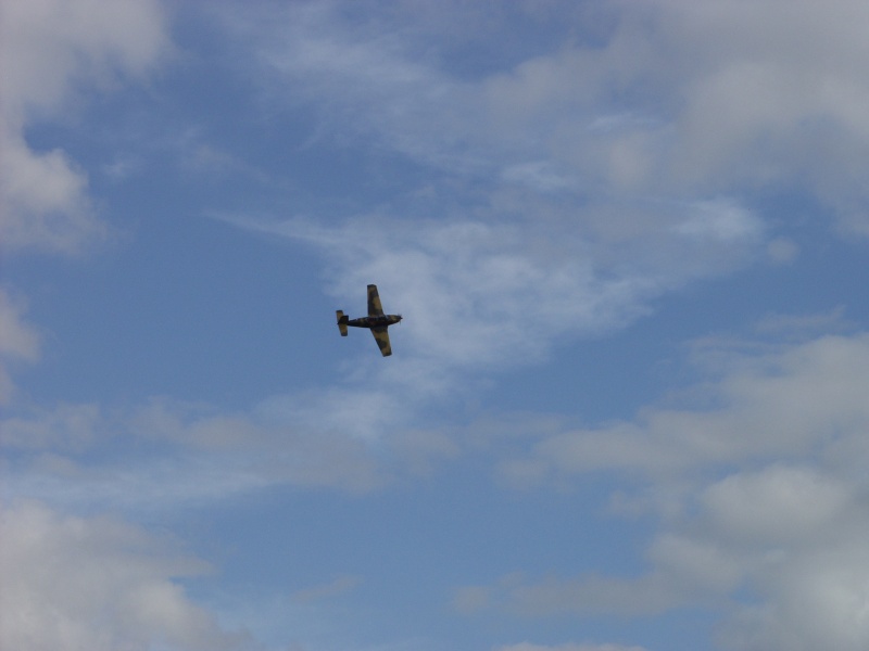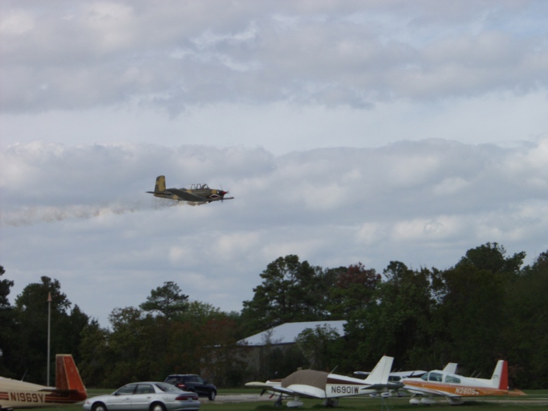 Then one of our local T-34 pilots took off and I heard on the radio that he was making a 360 for the option.... this is code for I am coming back around for a highspeed low pass. In this case he even used smoke. I quickly grabbed the camera and got a pic as he came over the gas pumps and then as he pitched up and turned and then he was outa there.