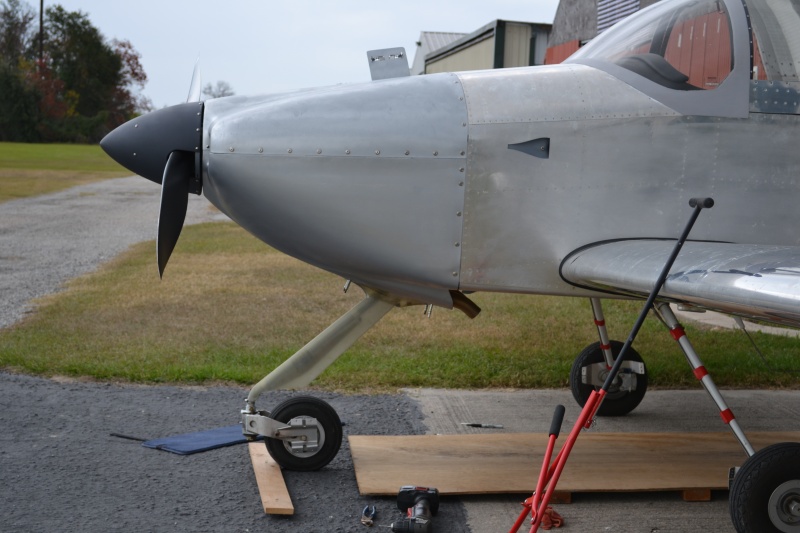 Next I removed the cowl and enlarged the slot to make it easier to remove the cowl after its painted. Started fitting the new nose gear fairing. Hard to get this right since its an odd shape but kept at it until it looked straight.