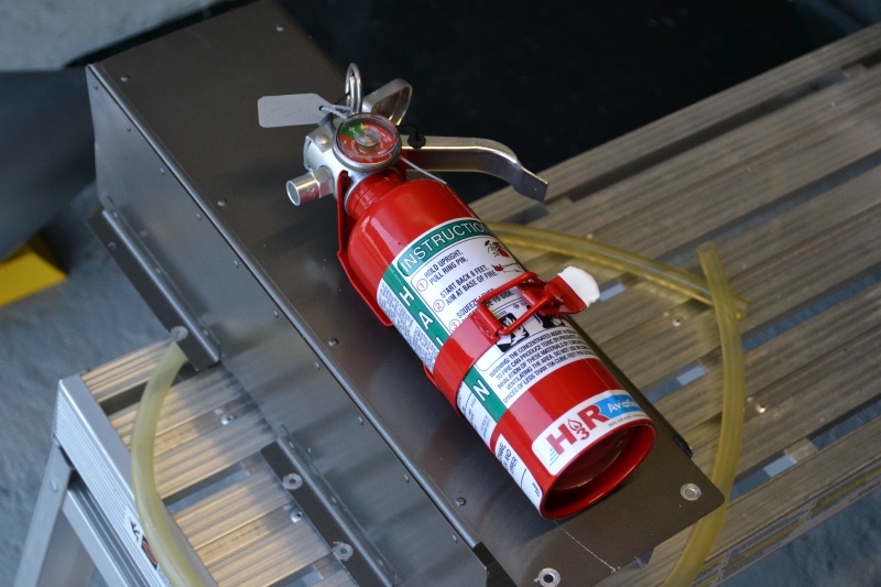 I received it in the mail on Thursday so since I had to install it I figured it was a good time to mount the fire extingisher on the top of the pump cover. Mr. Bixby came up with this idea so I stole it. I only steal good ideas so don't be offended when it happens to you!