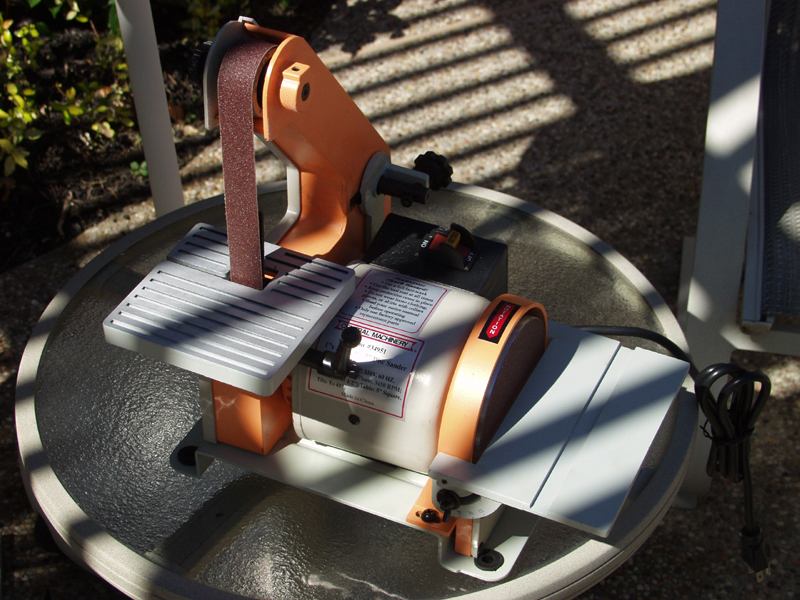 SO I started the day putting together my little belt disk sander that has been sitting on the bottom shelf of my bench forever. Once that was together I used it to cut the glass down to fit under the lens. With the spacer bolts in place it raises it just enough that it would hit the lens.
