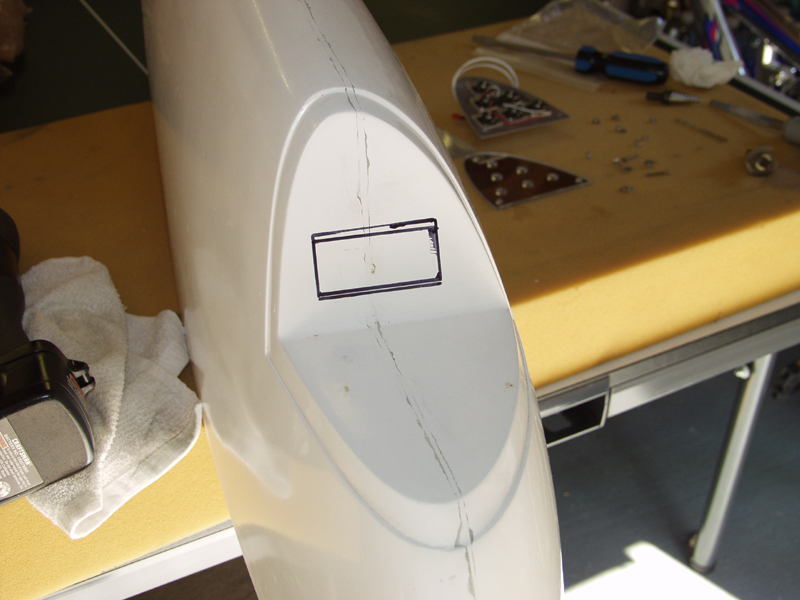 Next I got out the other tip and marked the hole for the heat sink. I drilled 4 holes in the corners and used the dremmel to cut the hole. Once the heatsink LED's are in place I used the holes as a drill template for the 3 holes. You have to take it all apart to use the holes and to trim down the glass so it takes several times to get it right. Put it back together and test fit and mark. Trim and do it again.