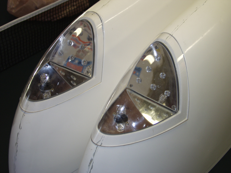 Once the LED is in place I set the strobe piece in place and marked it to trim fit. Same drill just trim and fit until you can see the lens will clear.