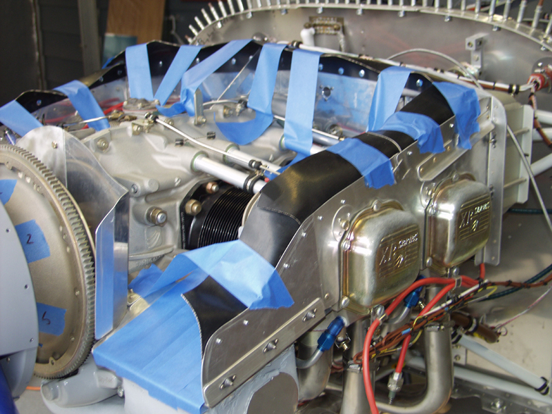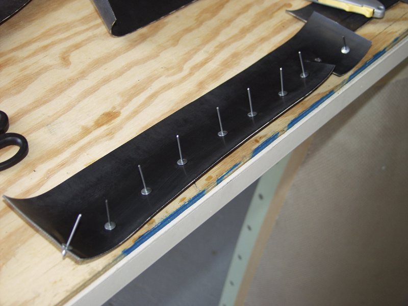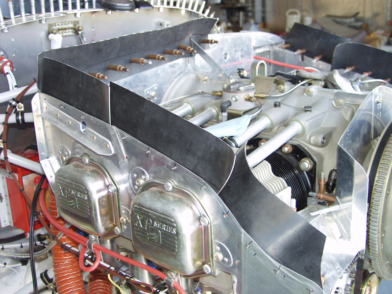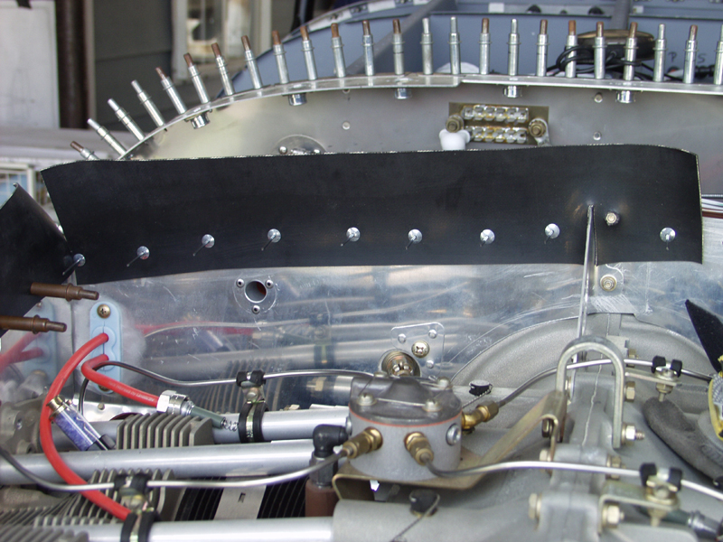 Next I started on the right hand side and cut 3 inch rubber strips. These strips get riveted in place with special large head rivets. The deal is to over lap each strip from the front to let the RAM air fill the area on top of the engine and build a RAM air chamber. You have to create the over laps to the rear so the incoming air creates the seal. I worked my way around clecoing as I went.