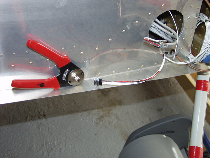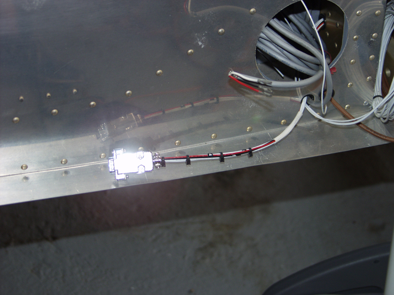 With that done I used safety wire to tie up the bottom cylinder covers. Its too tight in there to get any good pics. I tried making the threaded rods but that stainless rod was a bitch to tap the ends so I ended up doing the old fashion way. I don't really know why they even changed, I have seen so many done with the saftey wire. Next I pinned out the Trutrak harness to the wing root area for the autopilot servo.
