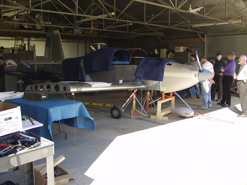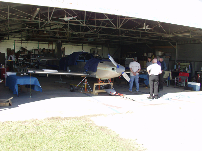 Once I got the engine cowled up I hooked up the towbar and pulled it down to Kerby's. We pushed in in place and I pulled my tool cart down there and some chairs and the usual beer chest. We had two type of folks on hand. We had the technical specialists Jim Kiloh a 7A builder and pilot and Jon Baker a 6A builder and pilot and a 4 and Kitfox builder. Then we had our heavy lifters, Harley Dave, Joe Gillen, Jim Carlile and a few other drop by folks occasionally.