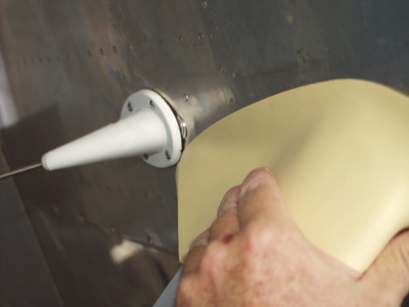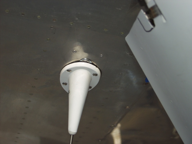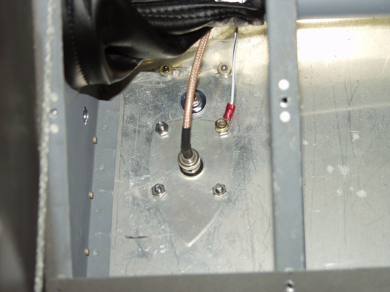 Last I used flush pop rivets backed up with washers to fill the 2 front screw holes. In the pic it looks like the front of the antenna is sitting up but that is really the black rubber gasket. This should work out well giving me clearance for the upper fairing I needed. Once everything was installed I fired up the panel and did a radio check with Unicom and back in business.