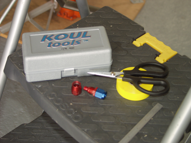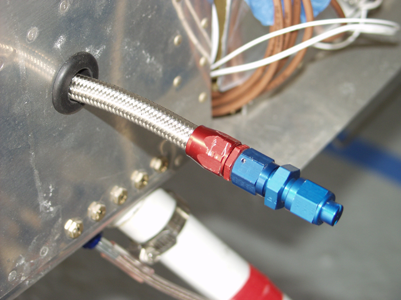 I installed the stainless fuel lines from the connections inside the plane. Used the Koul Tool to install the fittings on the outside since they wont fit through the rubber grommets once the fitting is on. This tool makes this job go much easier.