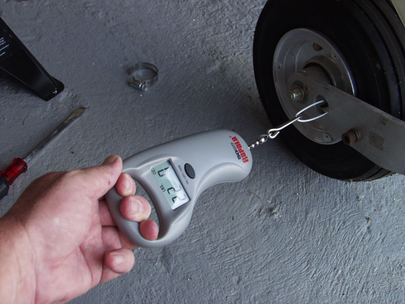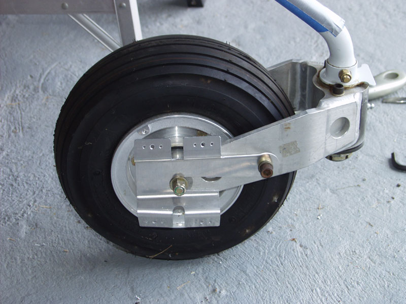 With the leg fairing fitting I removed the axle and installed the fairing brackets. Next I set the brakeout force with an electronic fish scale. With the brackets in place the allen bolts passed thru the wheel bracket a bit too far. Seems like there would be a chance of hitting the tire when flexing on landing. So I installed 2 more washers on each side. The pic from above shows the result of the additional washers.