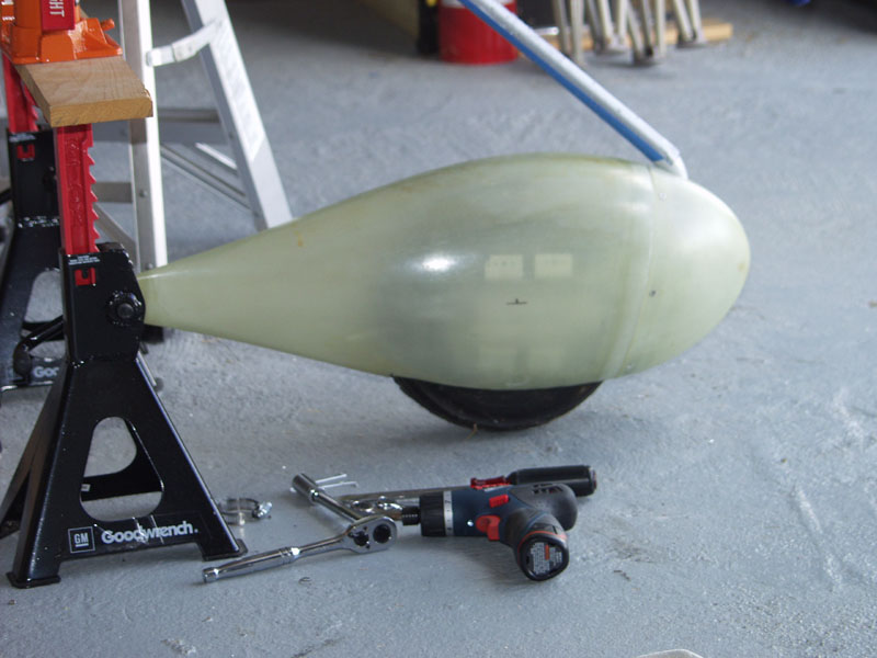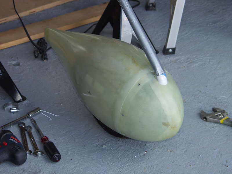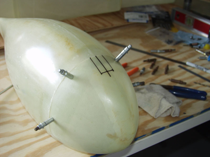 Next I installed #6 nutplates on the rear part of the fairing and countersunk the nose piece for #6 flush screws. Next I took some measurements and marked the position of where the hole needed to be drilled in the nose cap. I also marked the bottom for more space for the tire to have additional clearance.