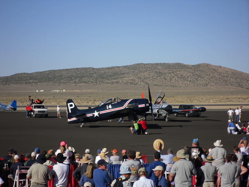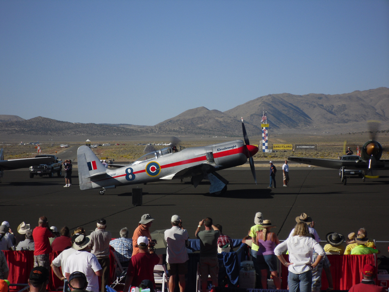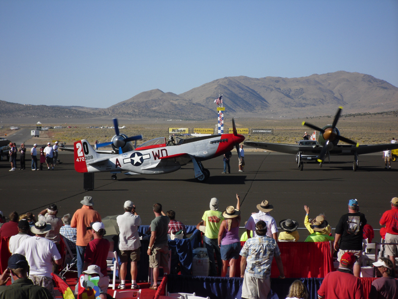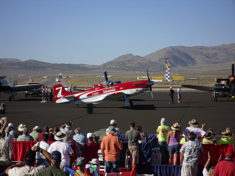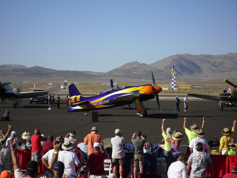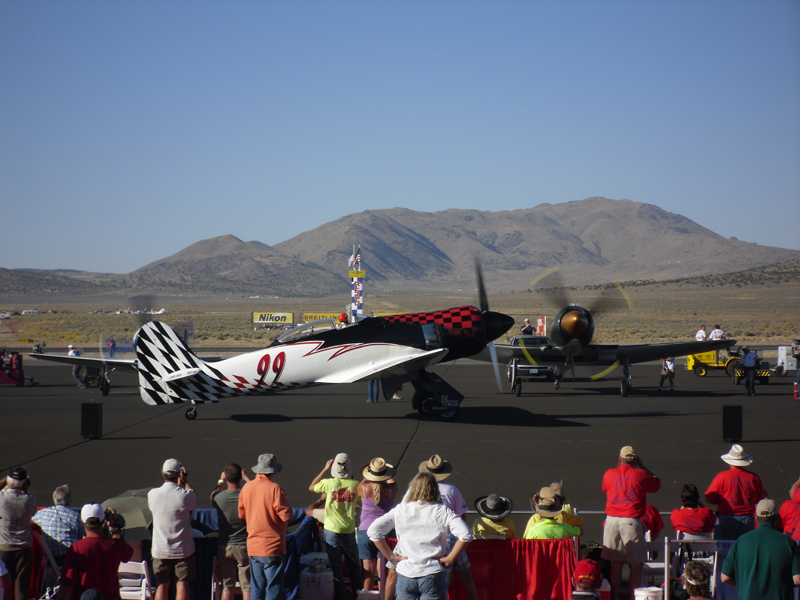 Well I included some pics here of the show. Starting with the decent of the Flag! and then the departing the pits for the Gold race on Sunday. Strega won hands down not even close. Piloted by the young Steve Hinton jr. Quite Impressive. The first 3 laps were over 500 mph. Next year when Dago Red returns it is really going to be hard for me to choose. Both of these planes are my favorites from over the years. Its kind of hard to tell they are P-51's with some of the mods but they are beautiful planes.