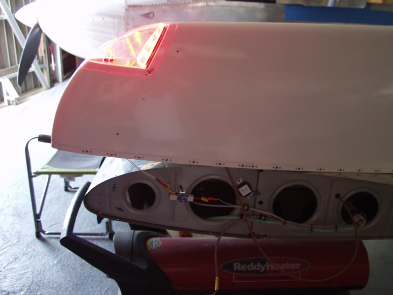 I noticed the other day during a taxi test that I had white noise on the radio. I did some further testing to find that it was the LED NAV lights causing the issue. I gave Jeff a buzz to find out that he said Cletus I told you not to use those pucks and suggested to change out the pucks that came with the lights to a 8 ohm 20 watt resistor from Radio Shack.