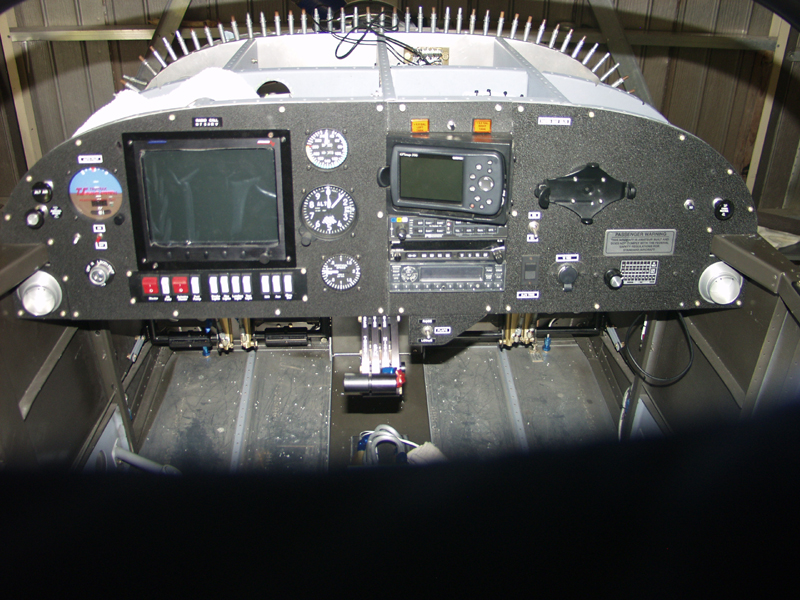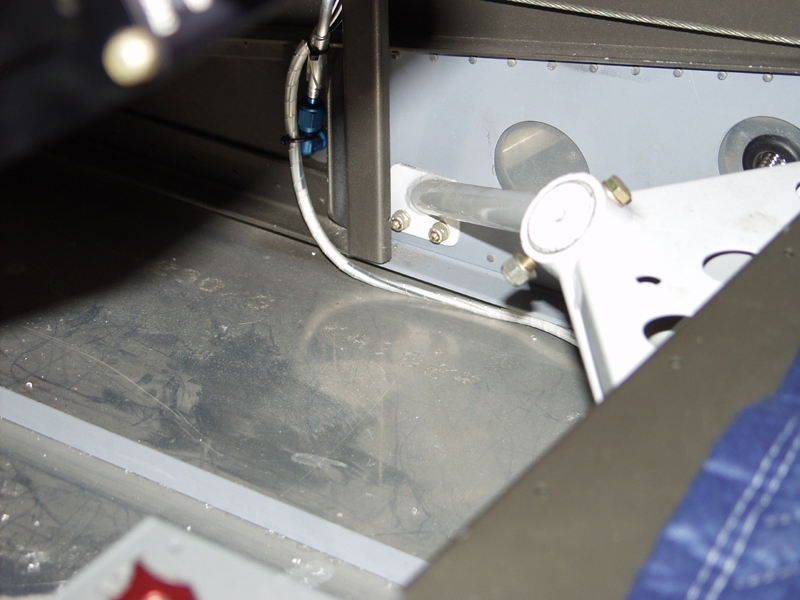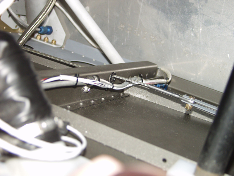 I also wrapped it with wire wrap for the part that will run behind the carpet flooring and will tuck this under the floor angle. I ran it thru 2 plastic bushings to pass it thru the wing spar channel. Then routed it out the side of the fuselage.