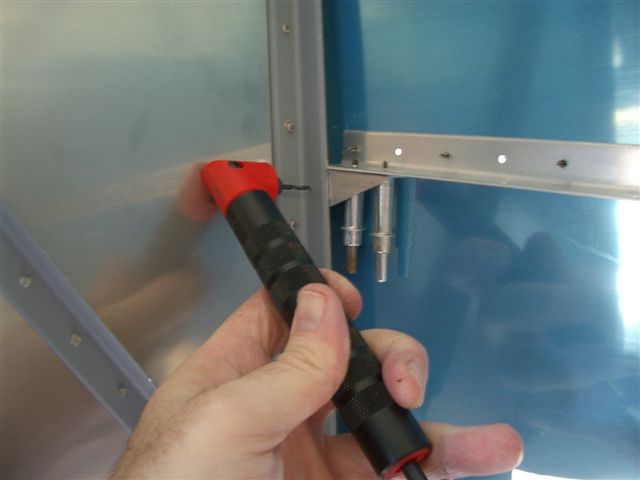Then I resinstalled and used the close quarters drill to drill the hole in the firewall angle. Again starting at #40 then enlarging to #30.
