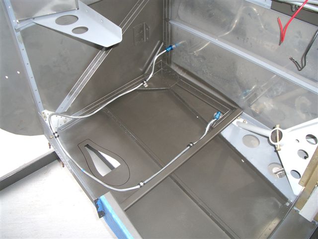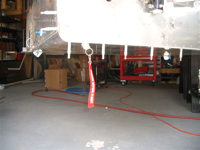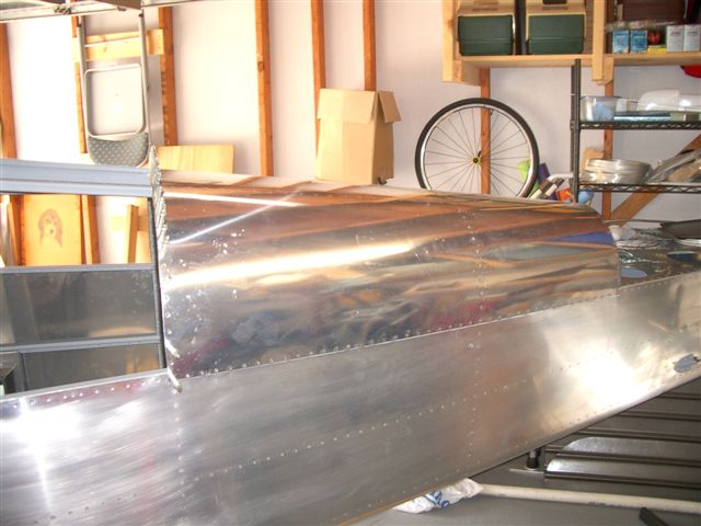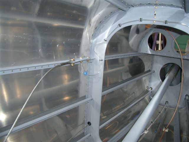 Next I wanted to get the aft most top skin completed so I got the last rivets in place which allowed for the seat belt brackets to be bolted in place. I am trying to not leave anything in the aft area so as not to have to climb my fat ass back there for any reason. After the brackets where in I installed the seat belt cables and tie wrapped them out of the way so I can still rotate for the last skin without them flapping around.