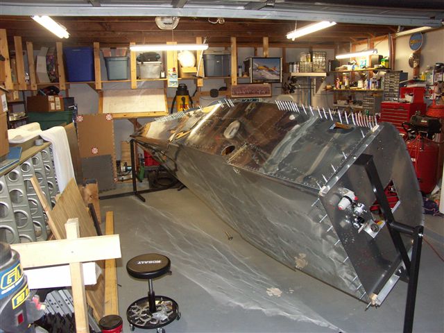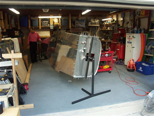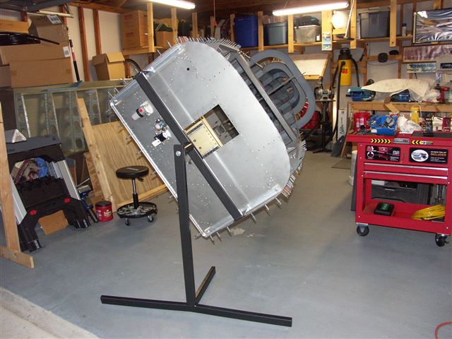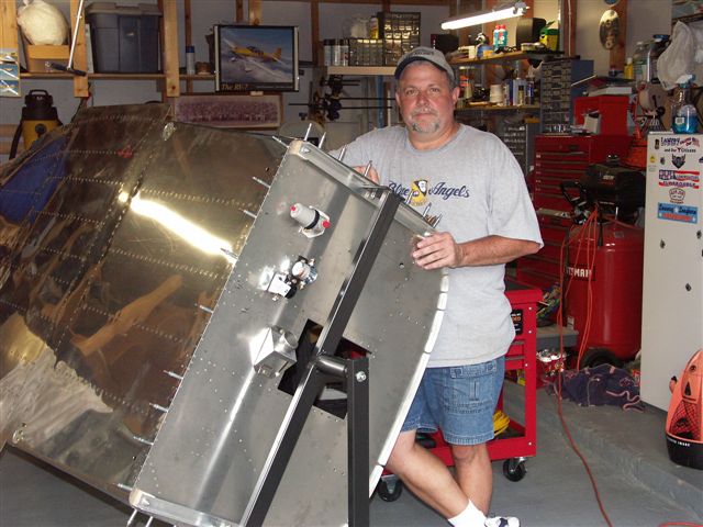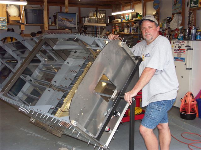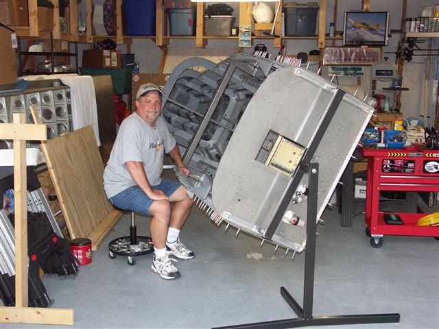 Also Dave stopped by to see the rotating stand. That's him in the pink shirt. What a man huh...... I took some more pics of the fuse rotated in several pics. Sure is coming in nice to work in without having to climb in or bend over.