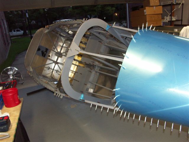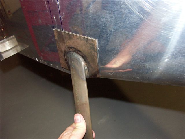 I wanted to try to figure out if I could get more of the bottom gap out of the step flange. I enlarged the hole in the baggage rib to allow the flange to sit more flush with the side skin.