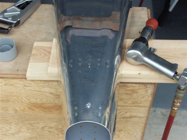 Riveted back 2 bulkheads to tailcone. Came out pretty good. Was able to squeeze the back most and some of the ones on the side.