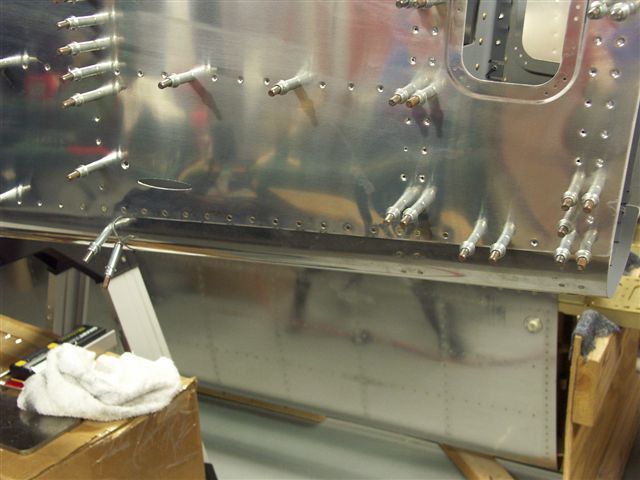 Finally got started on riveting. I clecoed thr left side skin and started along the bottom edge where the tailcone meets the side skin. Came out pretty good so I moved onto the bottom floor panel.