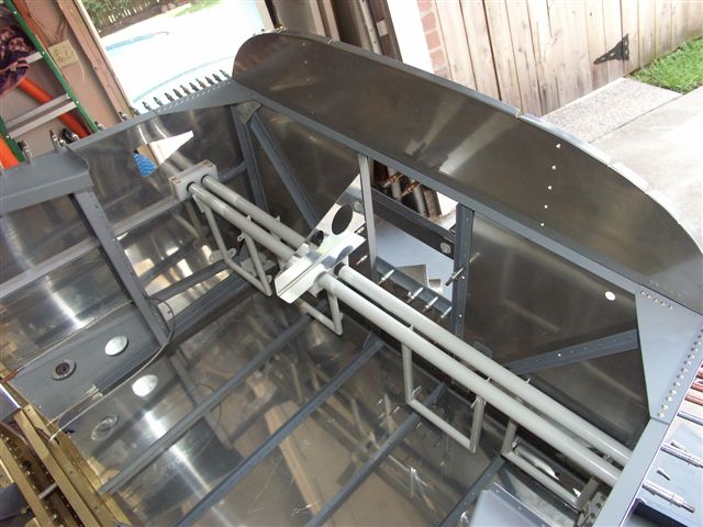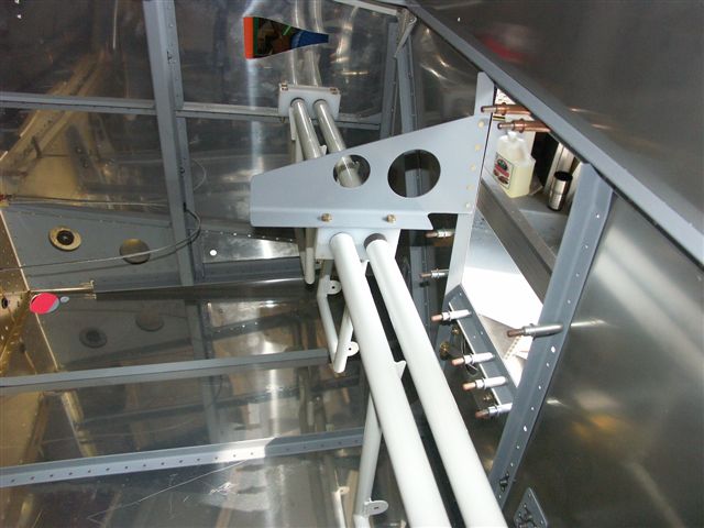 Next I fit the center rudder pedal brace and clamped to drilled rivet holes and bolt holes. Primed and riveted in place. I am getting an itch to put the seats in and see how the pedals feel.....