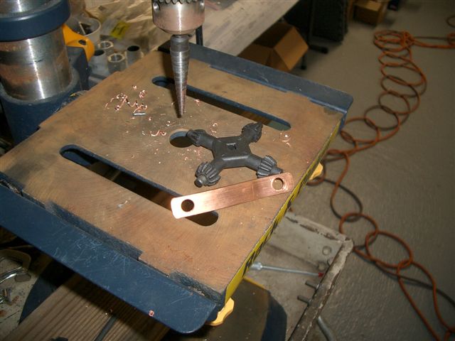 Next I fabed up the copper strip to connect the power and starter solenoids. There is a slight offset with these 2 pieces so it requires for the holes to be drilled with a slight bend on each end to match up.
