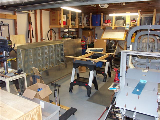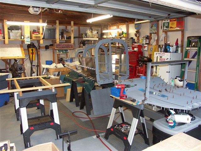 As you can see the garage is getting really tight. Once I get this next stage done I can mount the center section and start using the stand I got from Jeff Bordelon.