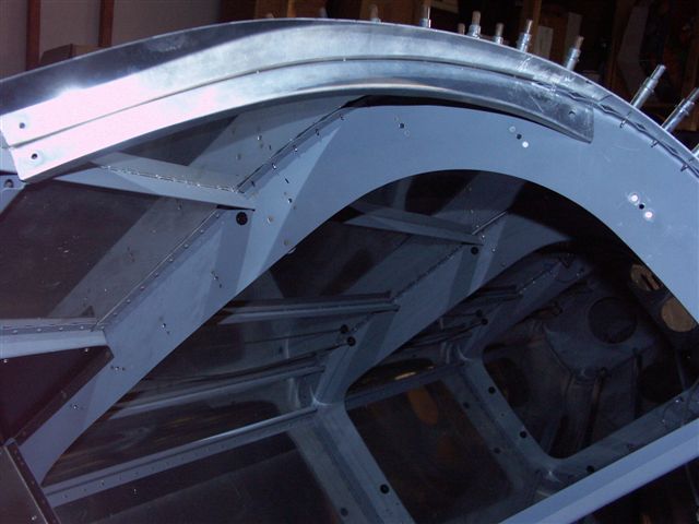 Now its time to get back to building. The only thing stopping me from removing the top skins to dimple and prep for riveting is the F-6111 stiffener ribs. Reseaching on VAF I found an update I thought I would try. I messed up the first ones back in October so I reordered a set from Vans. Tonight I started on the right side and it came out great. Basically all you do is mark a center line on the flange that you drill to and starting at the bottom drill and cleco working up to the top. As I got about half way I started marking the top edge and using the scotchbrite wheel to grid off to the mark. It took about 3 trips to the wheel after remarking each time. As you work your way up the additional bending to follow the center line as you drill keeps moving the top edge closer to the 705 bulkhead. Tomorrow I will do the left. Hopefully it will go quicker. Once these are done I can remove the top skins and prep for final riveting. Before I take this baby off the rotating stand I want to make sure I have all of the little details like wiring and tube rigging done so as not to have to crawl back into the tail if at all possible. This is one of the main reasons for the Rotating stand. Again I cannot stress enough how great this thing has been. If you are building you should order one of these from Jeff B at http://www.jeffsrv-7a.com. What a back saver.
