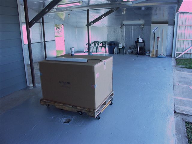 Meteor called me several times during the day to let me know how the trip was progressing. As I got home they called to tell me the driver was in Houston and they were right by the hangar so I told them how to get there. One last call to my buddies who were in route and 5 minutes later we were all at the hangar and ready to unload. I had picked up up a couple of wheel dollies from the house to make it easier to move around and we unload the bad beast to the dollies. I took some pics but not going to unwrap the plastic until I get the engine hoist from Phil and move the fuselage from the shop at home to the hangar.