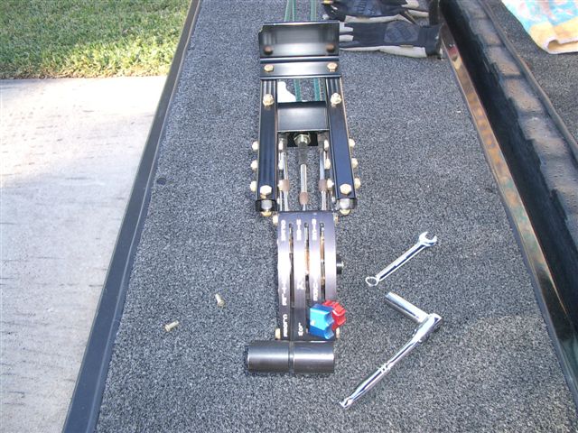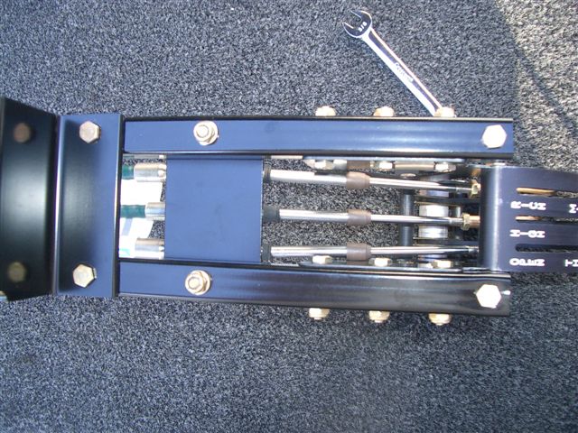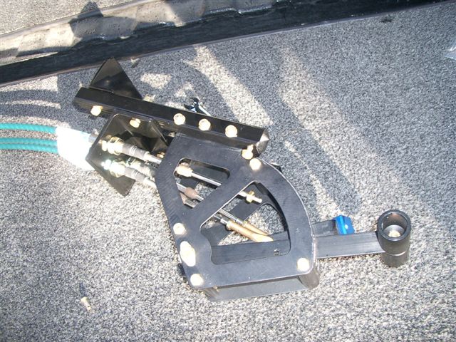 Now I see why Dave P drilled the rear mount for the cables closer together on the 2 outside holes. Looks like I will have to remake that bracket tomorrow. You can see from the top view how the 2 outside cables angle in from the side. The travel is smooth but there is some slight rubbing against the side frames of the quadrant.