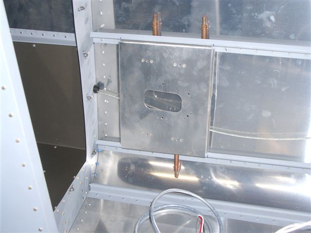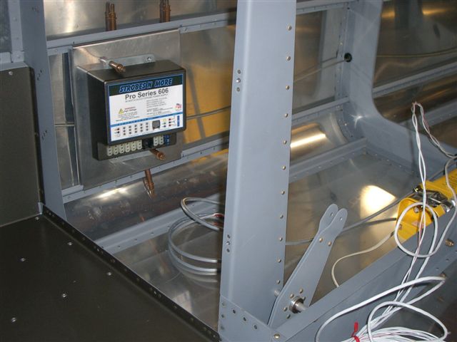 Once that was done it was time to install the ELT and Stobe box. I used the same mounting point as Dan did on the bottom rib just behind the baggage area. Worked out great. Next I used the new stobe ELT attach plate that Vans makes. It works well but still trying to figure out how I am going to pull those stinkin rivets. There is just no room there.