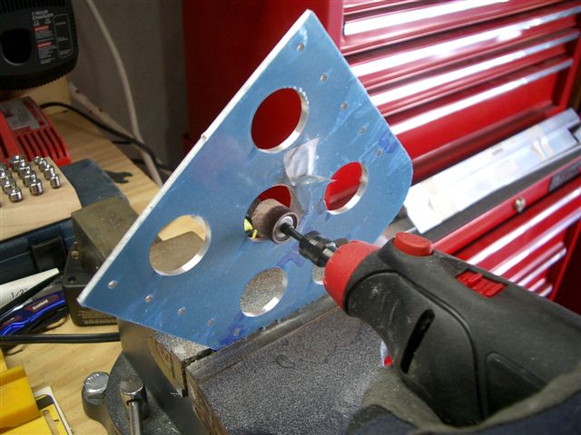 This thick aluminum required alot of fileing and sanding to get smooth. Ready to mount the side plates and prime for riveting.