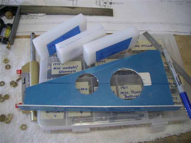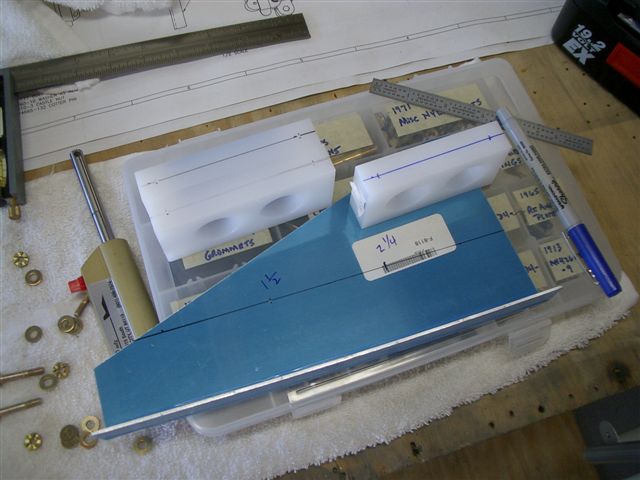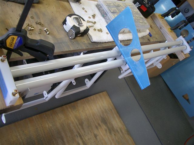 Just to get this part finished up I drilled the lighting holes in the rudder assembly brace and drilled the bolt holes in the bushing blocks.