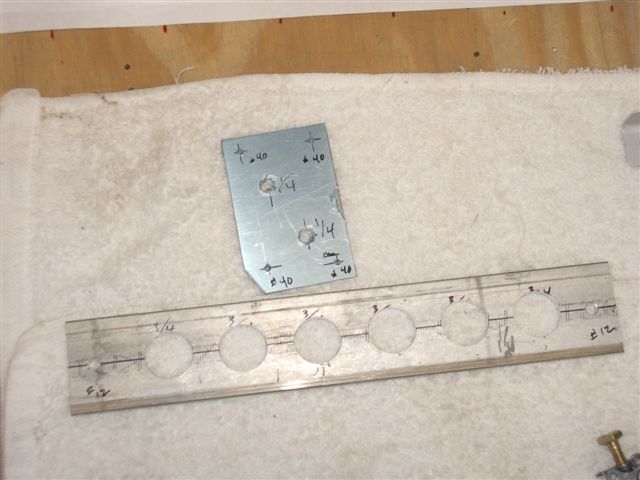 First I fabbed up the top bracket and firewall doubler. First I measured everything up and marked it and then on to the drillpress.