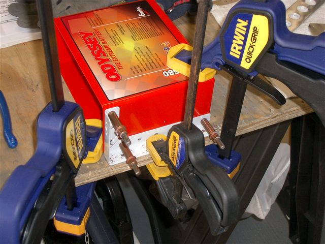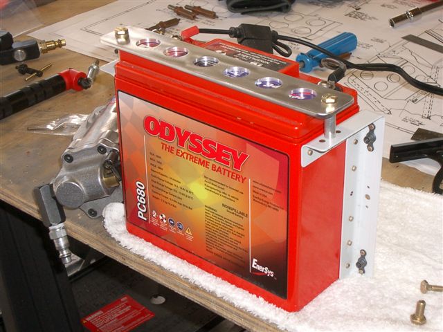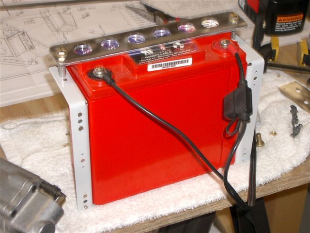 Last I riveted the side brackets onto the box and bolted the battery in place. Its ready to mount to the firewall.
